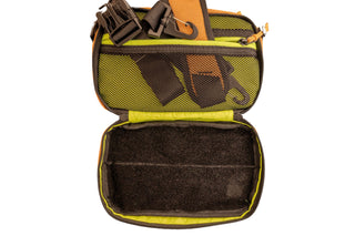 The 4DC Sling is designed with a full clamshell panel at the rear, featuring a fixed Velcro attachment for securely fastening specialized equipment or personal gear. This discreet and versatile setup allows for carrying important items with ease, giving you the flexibility to attach various holsters or accessories. The front pocket also offers convenient storage for items like sunglasses, ensuring quick access to your everyday essentials. Whether for daily carry or more tailored uses, the 4DC Sling has you covered.